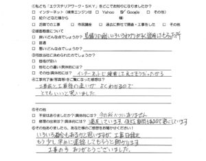 屋根が軽量になり、耐震になると伺っていますので、今後また地震が起きても大丈夫だとSKYさんを信じて、頑張ります。