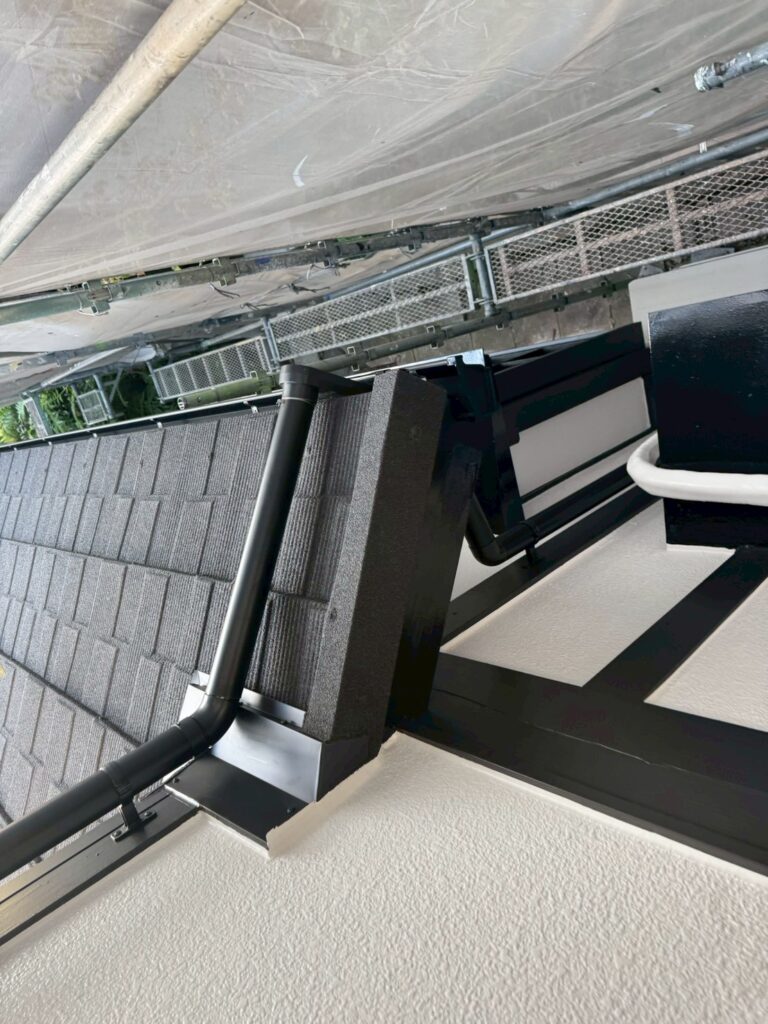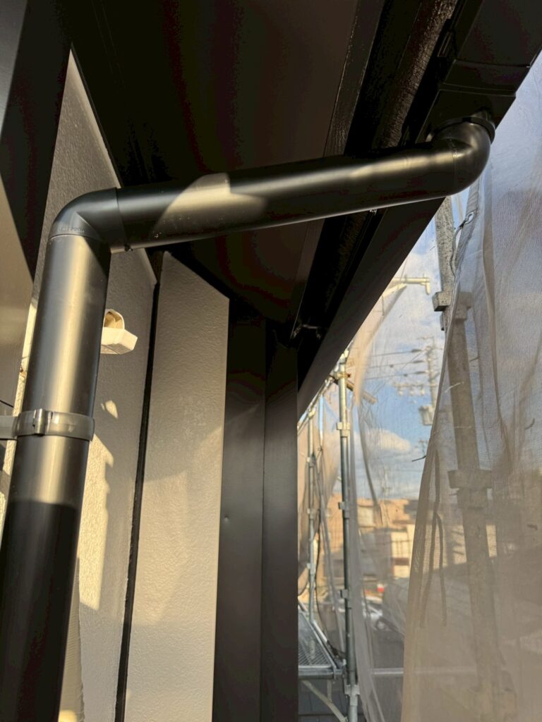 竪樋は新設の金具でしっかり固定させます。 以上で完工です。 ご依頼いただきまして誠にありがとうございました。