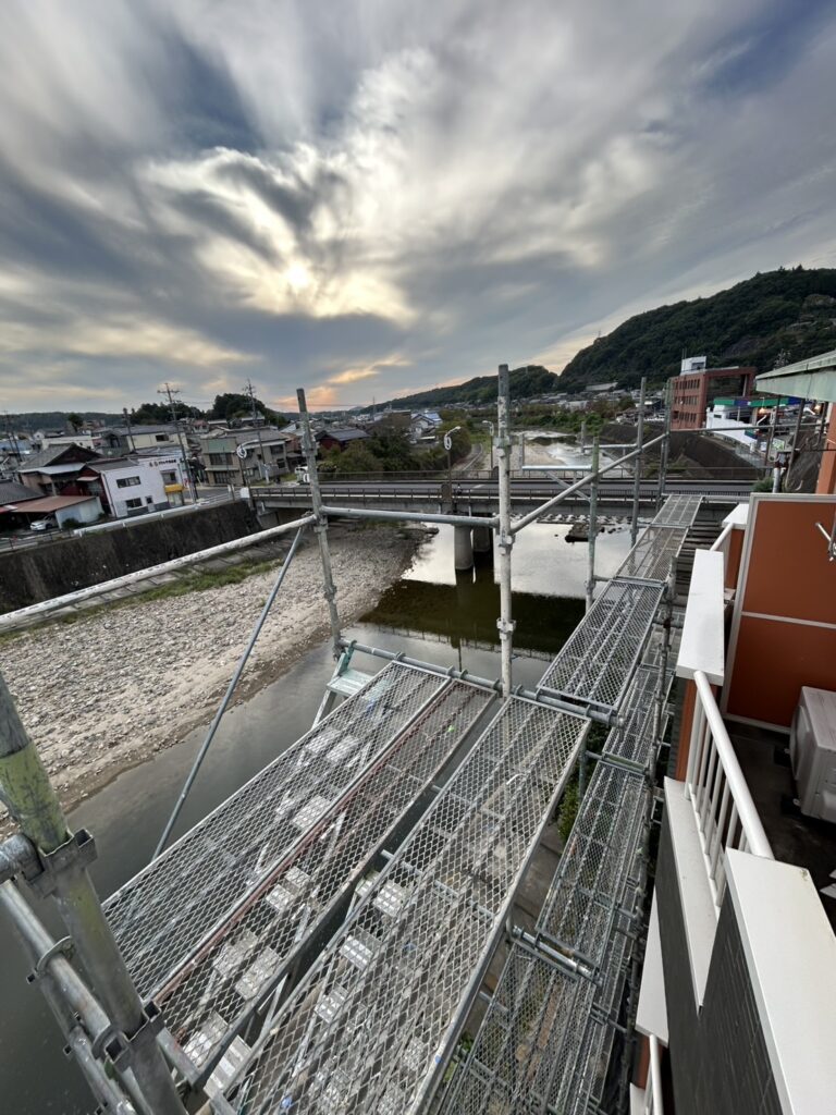 瑞浪市の現場本日着工です。よろしくお願いいたします。本日は作業用の外部足場を架けました。